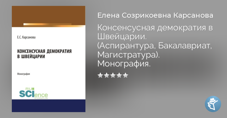 Консенсусная демократия в Швейцарии. (Аспирантура, Бакалавриат, Магистратура). Монография.