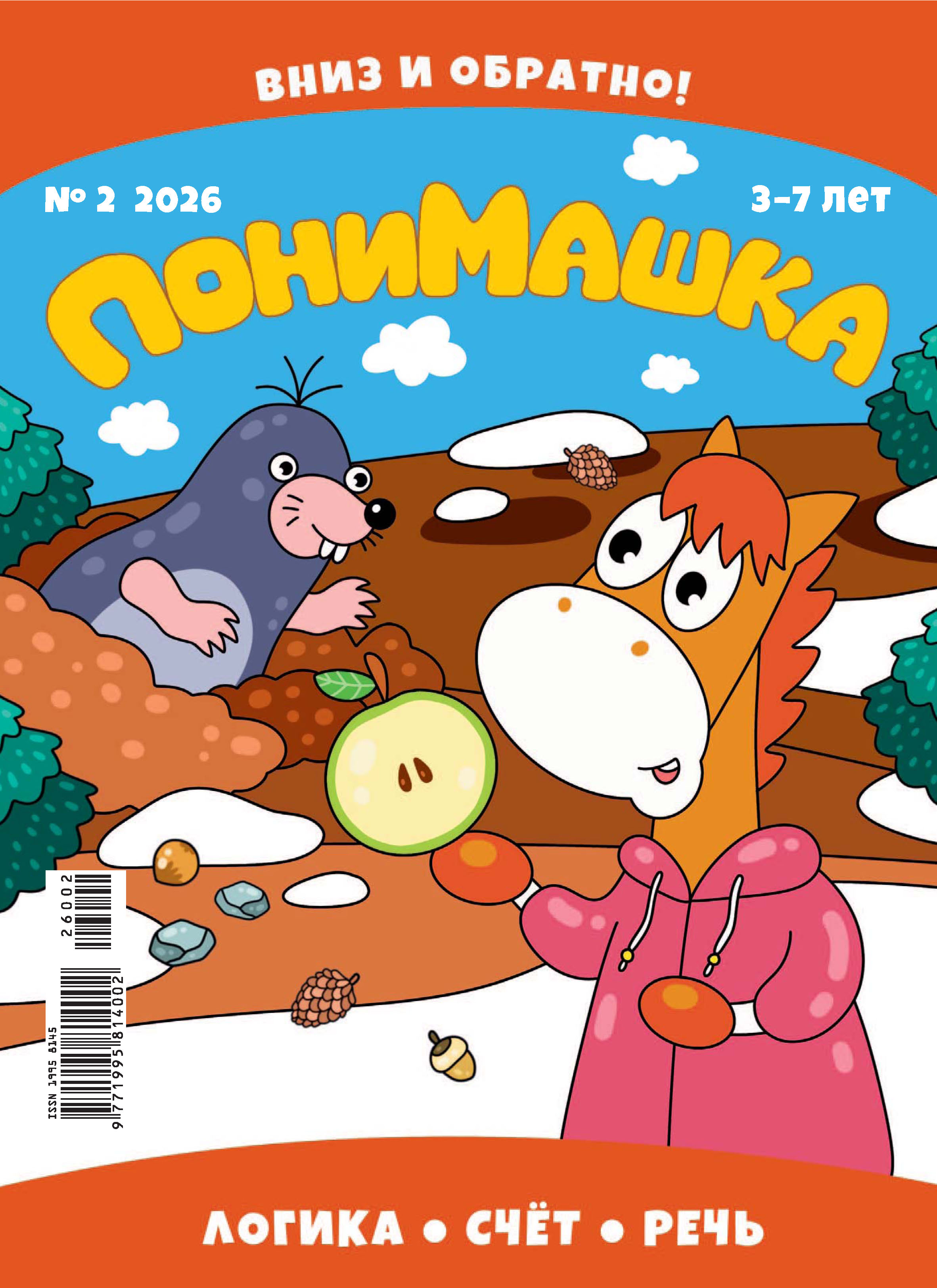 «ПониМашка» – развлекательный журнал для детей от 4 до 7 лет. Направлен на развитие творческих способностей и внимания ребенка. Содержит интересные задания для ребят, в игровой форме обучающие грамоте, математике, логике. На страницах журнала дети могут рисовать, решать сканворды, раскрашивать, играть в настольные игры и разгадывать ребусы. Главный персонаж журнала, пони по имени Машка, путешествует по загадочным местам, знакомя детей с миром животных, птиц и даже вещей. Каждый выпуск – тематический. Тема текущего выпуска – «Вниз и обратно!».
