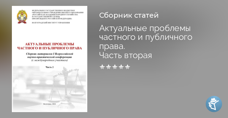 Актуальные проблемы частного и публичного права. Часть вторая
