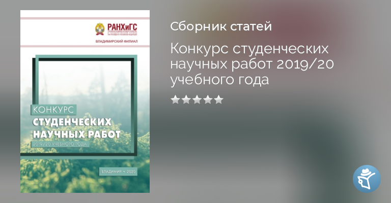 В сборнике представлены конкурсные научные работы, выполненные студентами Владимирского филиала РАНХиГС в 2019/20 учебном году. Печатается по решению ученого совета Владимирского филиала РАНХиГС.