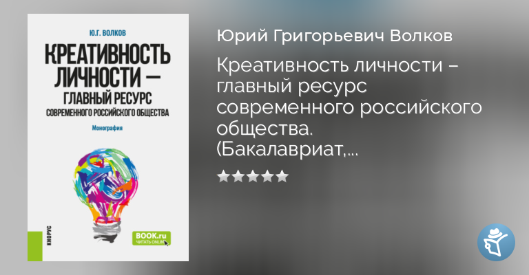 Креативность личности – главный ресурс современного российского общества. (Бакалавриат, Магистратура). Монография.
