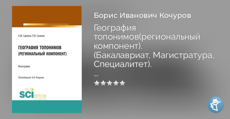 География топонимов(региональный компонент). (Бакалавриат, Магистратура, Специалитет). Монография.