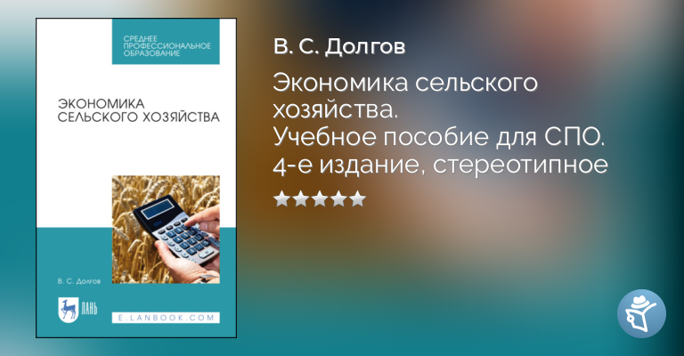 Экономика сельского хозяйства. Учебное пособие для СПО. 4-е издание, стереотипное