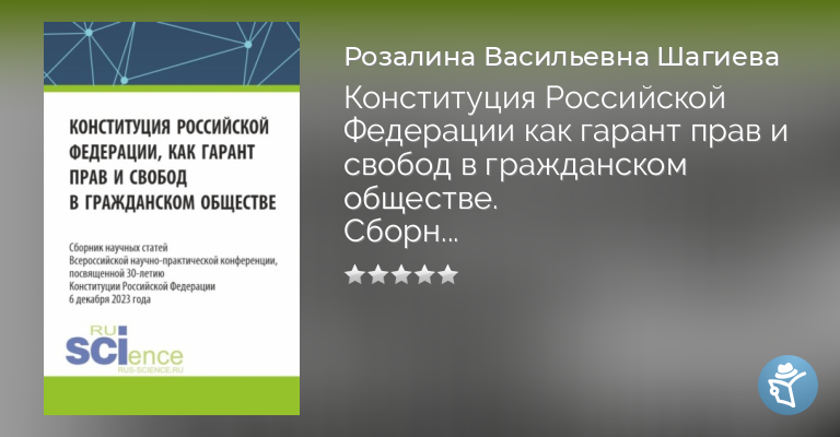 Конституция Российской Федерации как гарант прав и свобод в гражданском обществе. Сборник научных статей Всероссийской (c международным участием) научно-практической конференции, посвященной 30-летию конституции Российской Федерации. (Аспирантура, Бакалавриат, Магистратура). Сборник статей.