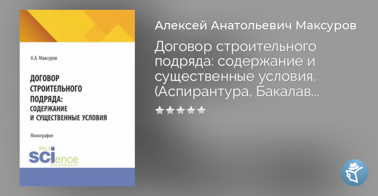 Договор строительного подряда: содержание и существенные условия. (Аспирантура, Бакалавриат, Магистратура). Монография.