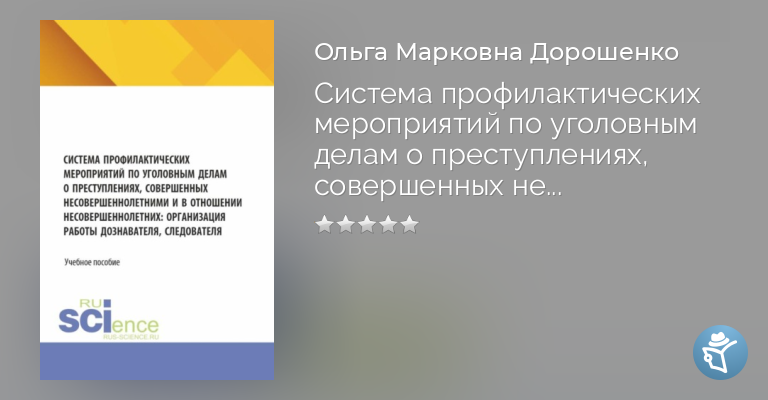Система профилактических мероприятий по уголовным делам о преступлениях, совершенных несовершеннолетними и в отношении несовершеннолетних: организация работы дознавателя, следователя. (Аспирантура, Бакалавриат, Магистратура, Специалитет). Учебное пособие.