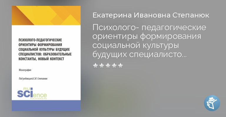 Психолого-педагогические ориентиры формирования социальной культуры будущих специалистов: образовательные константы, новый контекст. (Аспирантура, Бакалавриат, Магистратура). Монография.