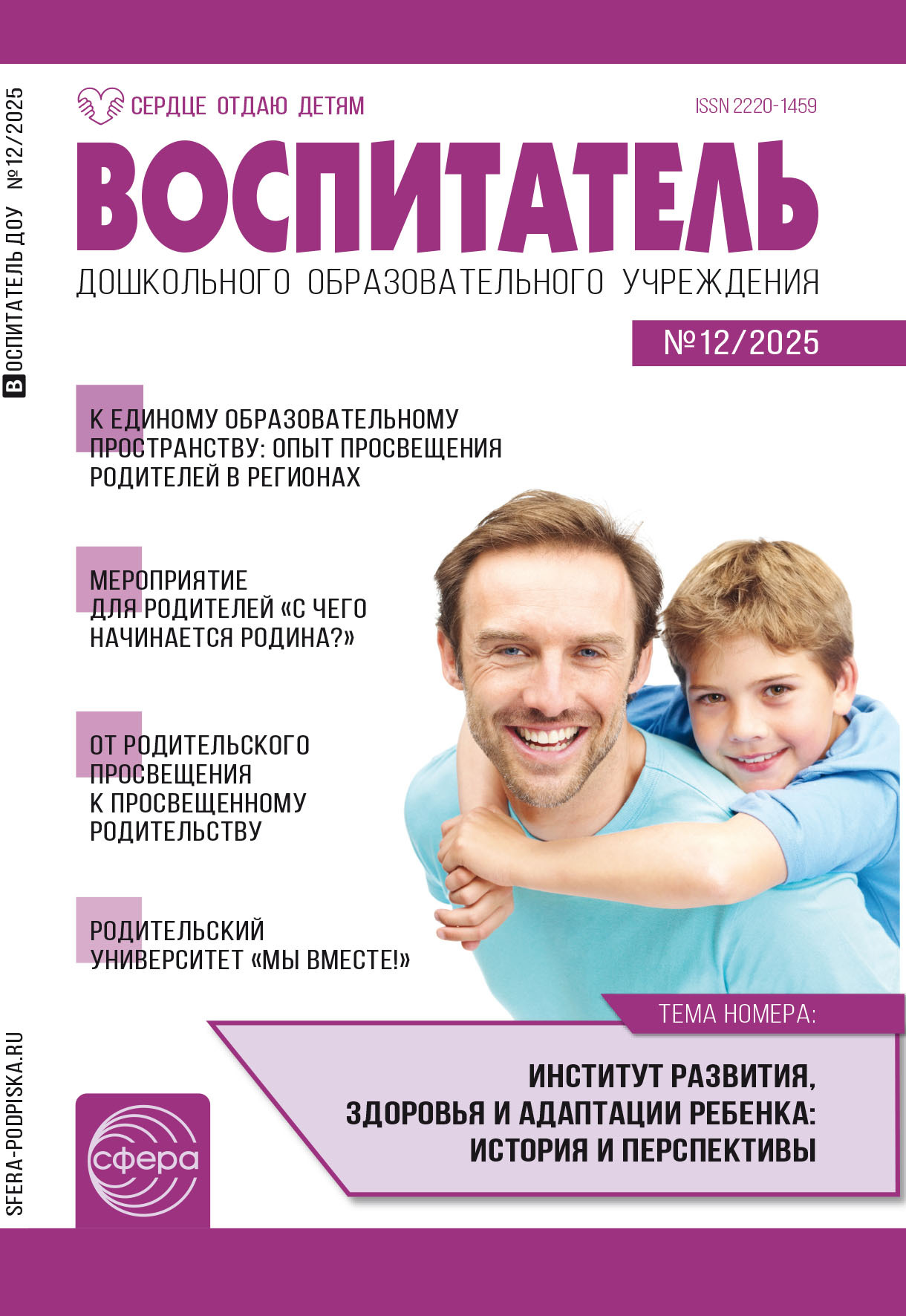 Журнал для воспитателей ДОО, логопедов, музыкальных работников, методистов и специалистов сферы дошкольного образования. Особенность проекта – регулярные региональные номера, отражающие национальную специфику представленных областей и краев страны, которые не только интересны, но и полезны для обогащения копилки профессиональных знаний и умений. Журнал-помощник, журнал-собеседник, журнал-учитель и друг для всех, кто трудится на благо детей, ежедневно решая непростые задачи дошкольного образования. Практико-ориентированные, самобытные материалы со всех уголков страны, ближнего и дальнего зарубежья. Прекрасная возможность регулярно получать информацию о происходящих событиях, обмениваться опытом, инициировать и вести дискуссии по наиболее острым и волнующим вопросам воспитания дошкольников. «Воспитатель ДОУ» – это: – четкая структура каждого номера, построенная в логике режима дня ребенка и воспитателя (разделы Утро, День, Вечер, Ночь); – методологическое, теоретико-методическое и социокультурное сопровождение процесса воспитания и развития дошкольников с учетом рекомендаций и требований ФГОС ДО и ФОП ДО; – инновационные практики, конспекты занятий образовательного, воспитательного и развивающего характера, проектная деятельность, планы непосредственной образовательной деятельности (НОД) и организованной образовательной деятельности (ООД), оригинальные авторские сценарии мероприятий (театральных постановок, праздников, досугов, совместных со взрослыми и пр.); – авторские, апробированные практикой и новые методические разработки по организации педагогического процесса в ДОО России и зарубежных стран; – технологии и опыт взаимодействия специалистов ДОО с семьями воспитанников.