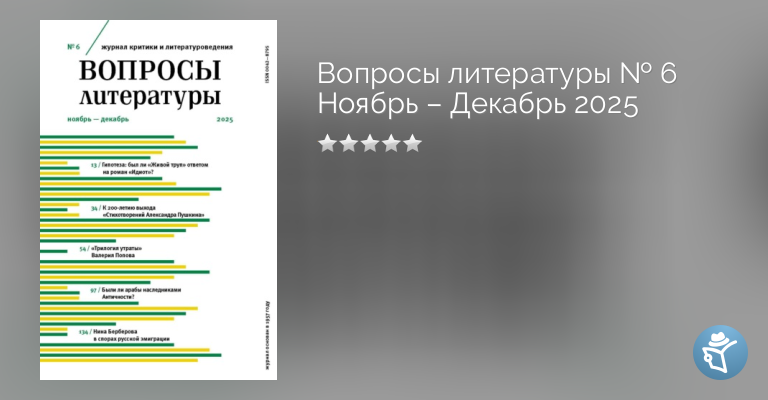 Вопросы литературы № 6 Ноябрь – Декабрь 2025