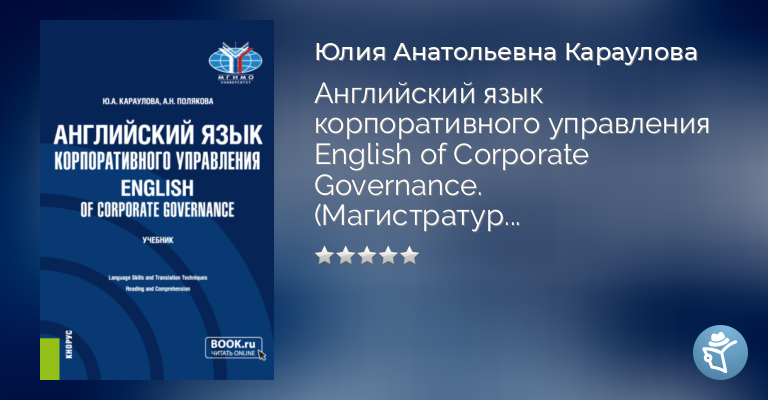 Основное внимание уделено вопросам перевода текстов юридической тематики, а также умению вести переговоры на английском языке по вопросам корпоративного управления. Тематика разделов охватывает такие актуальные аспекты корпоративного управления, как учреждение юридического лица, управление юридическими лицами, модели корпоративного управления, права акционеров и другие. Соответствует ФГОС ВО последнего поколения. Для студентов магистратуры, обучающихся по направлению «Государственное и муниципальное управление».