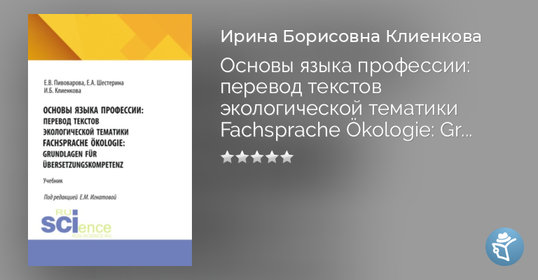 Основы языка профессии: перевод текстов экологической тематики Fachsprache ?kologie: Grundlagen f?r ?bersetzungskompetenz. (Аспирантура, Бакалавриат, Магистратура, Специалитет). Учебник.