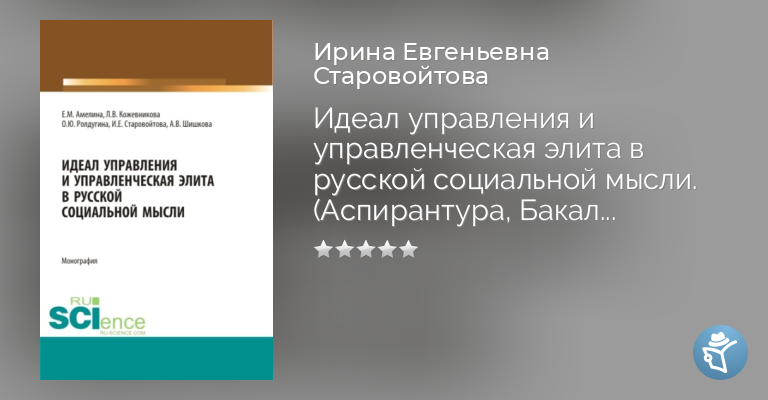Идеал управления и управленческая элита в русской социальной мысли. (Аспирантура, Бакалавриат, Магистратура, Специалитет). Монография.