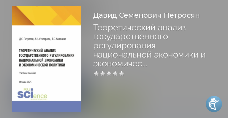 Теоретический анализ государственного регулирования национальной экономики и экономической политики. (Аспирантура, Бакалавриат, Магистратура). Учебное пособие.