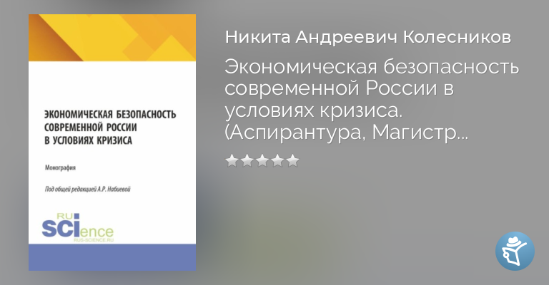 Экономическая безопасность современной России в условиях кризиса. (Аспирантура, Магистратура). Монография.