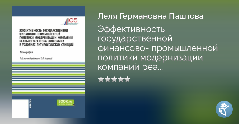Эффективность государственной финансово-промышленной политики модернизации компаний реального сектора экономики в условиях антироссийских санкций. (Аспирантура, Магистратура). Монография.