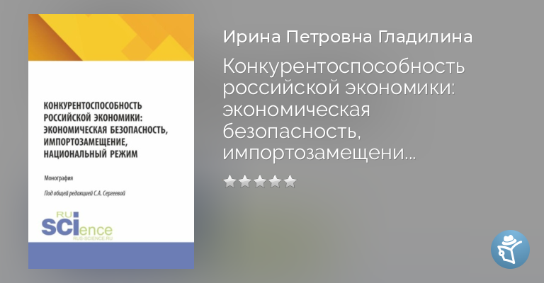 Конкурентоспособность российской экономики: экономическая безопасность, импортозамещение, Национальный режим. (Аспирантура, Магистратура). Монография.