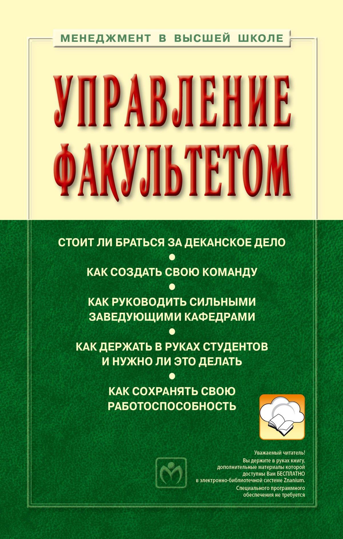 Учебник посвящен деятельности деканского корпуса высших учебных заведений. Главы книги объединены в пять модулей: факультет и его руководитель в системе управления вузом, технологии управления факультетом, управление экономической и правовой деятельностью факультета, управление образовательными программами, контроль и оценка деятельности факультета.