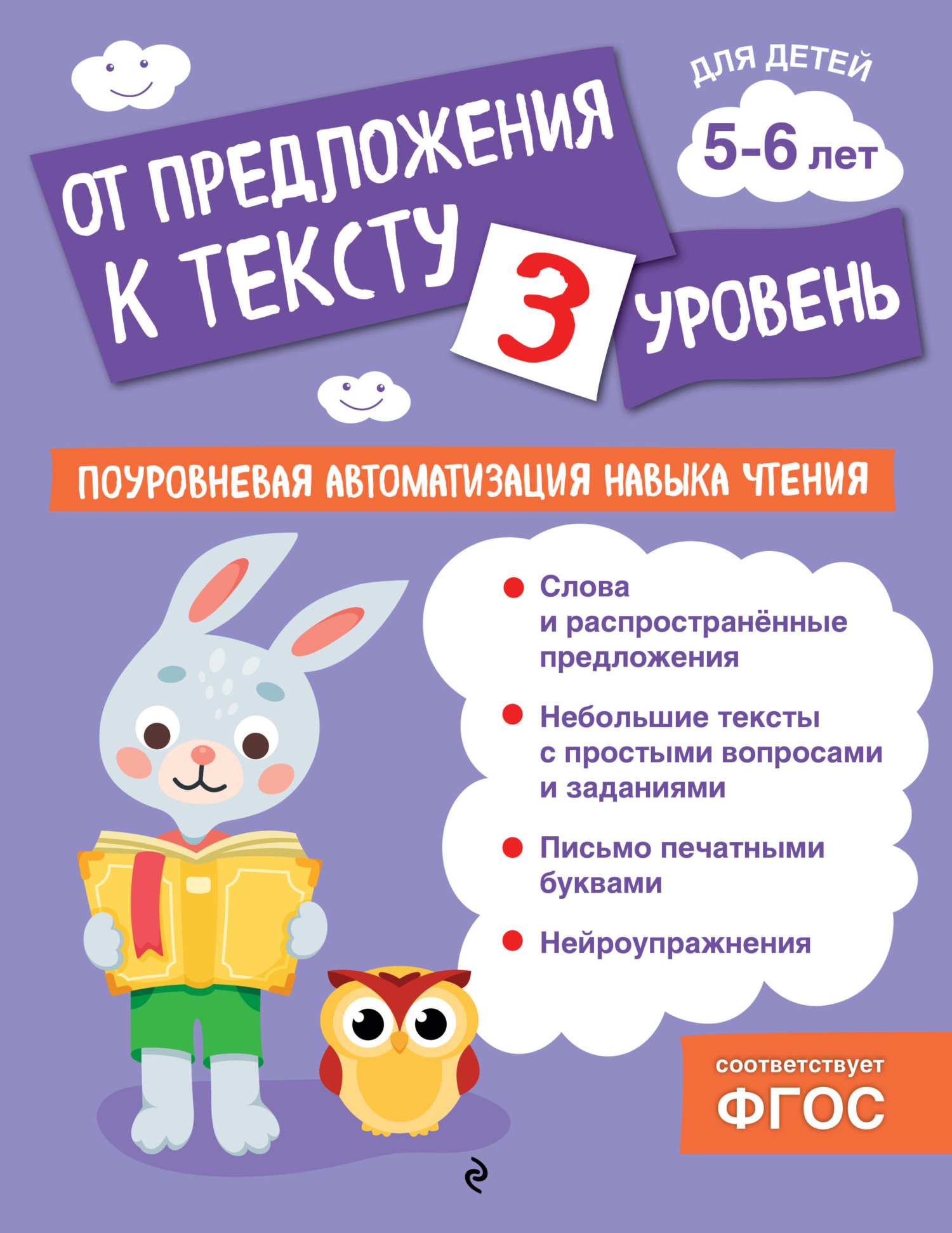 Чтение – очень сложный для ребёнка процесс, и лучше делать это постепенно, пошагово. Цель нашего пособия – подготовить ребёнка к обучению чтению: сформировать навык осмысленного чтения предложений и небольших текстов, потренироваться в написании слов печатными буквами. Книга третьего уровня включает в себя 13 занятий. Выполняя увлекательные задания, ребёнок закрепит навык слогового чтения, потренируется правильно ставить ударение в словах, а также обогатит словарный запас, разовьёт связную речь, внимание, сможет качественно подготовиться к школе. Адресовано любознательным дошкольникам, их родителям и воспитателям для занятий дома или в детском саду.