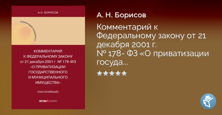 Комментарий к Федеральному закону от 21 декабря 2001 г. № 178-ФЗ «О приватизации государственного и муниципального имущества» (постатейный)