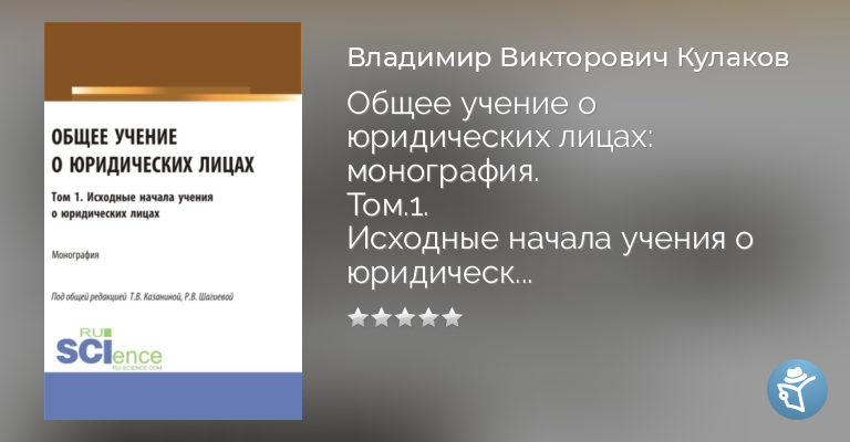Общее учение о юридических лицах: монография. Том.1. Исходные начала учения о юридических лицах. (Аспирантура, Бакалавриат, Магистратура). Монография.
