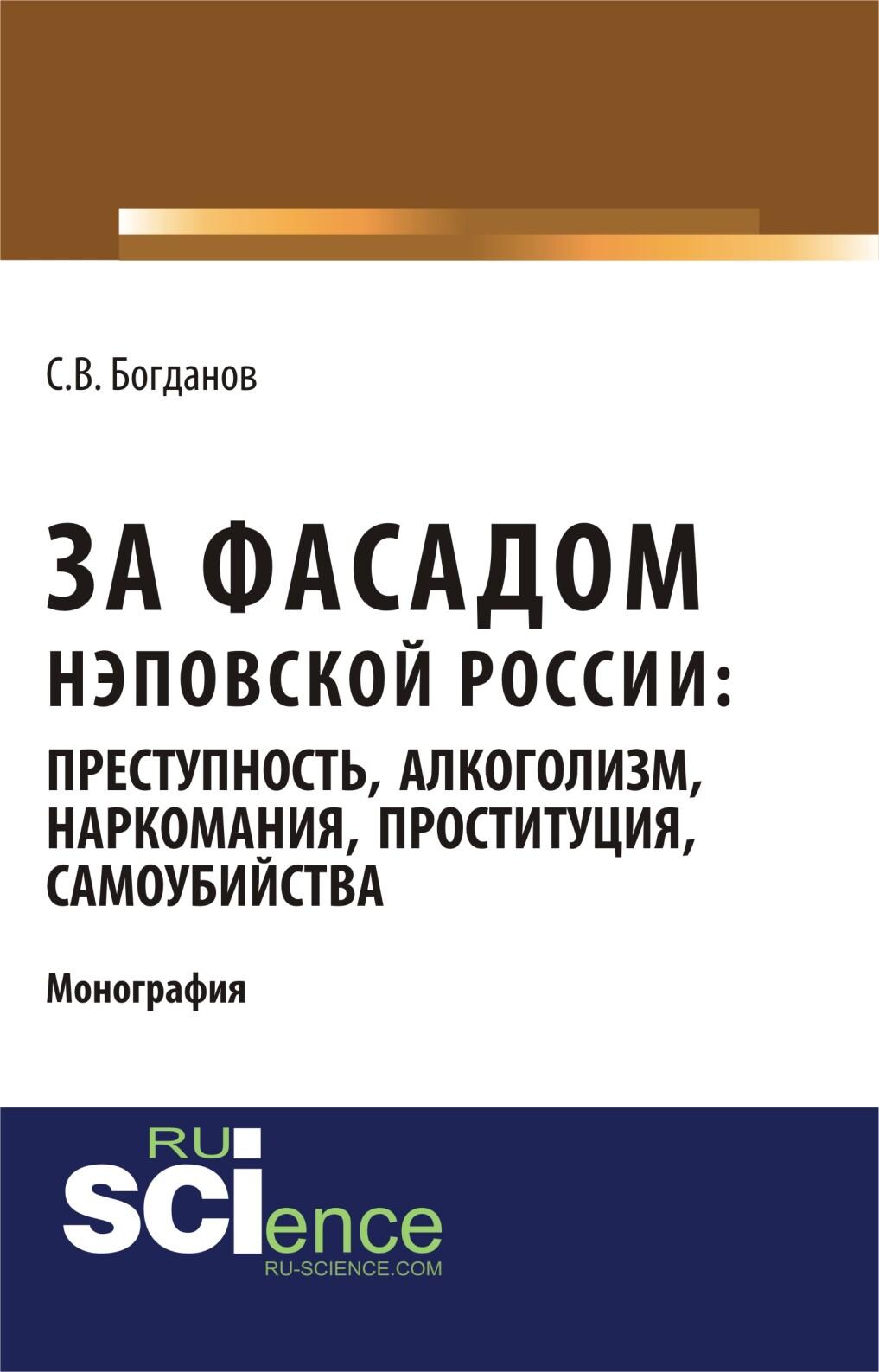 За фасадом нэповской России: преступность, алкоголизм, наркомания, проституция, самоубийства. (Аспирантура, Бакалавриат, Магистратура). Монография.