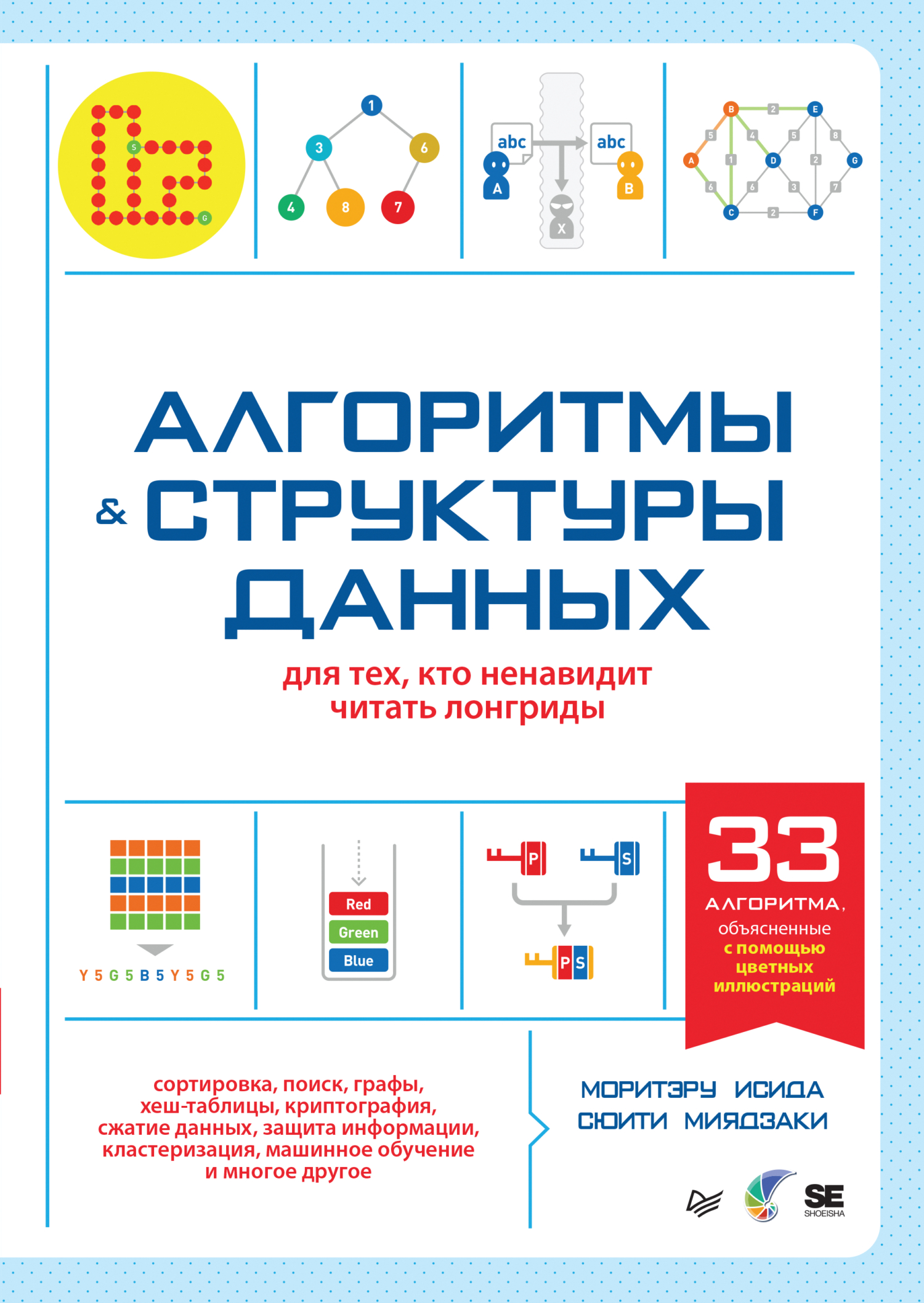 Алгоритмы – это сердце программирования. От их правильного выбора зависит, будет ли программа работать мгновенно или заставит вас ждать вечность. Но как разобраться во всем этом, если вы только в начале пути? Эта яркая книга делает изучение алгоритмов и структур данных простым и увлекательным. Благодаря полноцветным иллюстрациям, схемам и наглядным примерам сложные концепции становятся понятными даже новичкам. Вы узнаете, что такое эффективность алгоритмов, как работают сортировка, поиск, графы и хеш-таблицы, а также познакомитесь с криптографией, сжатием данных, защитой информации и машинным обучением (алгоритмом кластеризации). Материал изложен так, чтобы вы не просто запомнили алгоритмы, но и научились применять их на практике. Готовы начать? Тогда вперед – к пониманию алгоритмов!